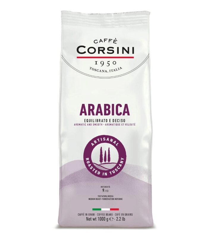 Kawa ziarnista Caffè Corsini Arabica to wysokiej jakości blend 100% ziaren arabiki, które zostały starannie wyselekcjonowane, by zapewnić najwyższą jakość specjałów w ekspresach ciśnieniowych i kawiarkach. Precyzyjnie opracowany proces palenia w stopniu średnim nadaje tej kawie wyjątkowy smak i bogaty aromat. Kawa ma niską zawartość kofeiny.