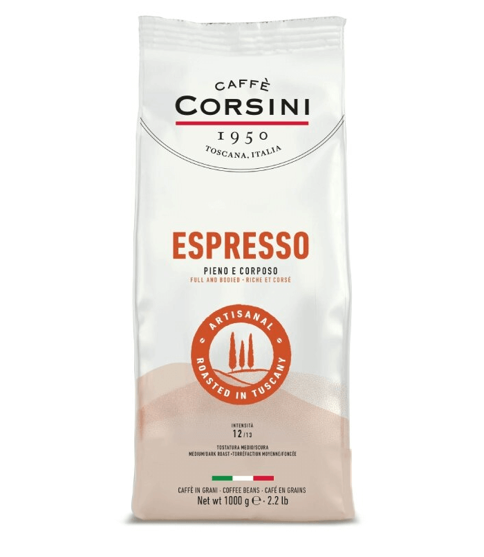 Kawa ziarnista Caffè Corsini Espresso to kompozycja ziaren arabiki i robusty, które zostały starannie wybrane i umiejętnie palone, by zapewnić najwyższą jakość specjałów w ekspresach ciśnieniowych i kawiarkach. Precyzyjnie opracowany proces palenia w stopniu średnio-ciemnym nadaje tej kawie wyjątkowo intensywny smak. Ze względu na dodatek robusty, kawa ma średnią zawartość kofeiny i doskonale sprawdzi się na pobudzające espresso o poranku.