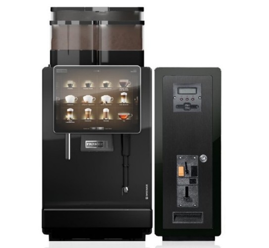 Model A800 można łączyć z szeroką gamą dodatkowych akcesoriów, jak np. młynek do ziaren lub podgrzewacz do filiżanek. Przystosowany jest do różnych metod płatności, jak gotówka, karta płatnicza czy prywatne aplikacje pracownicze. Szwajcarscy technolodzy precyzyjnie opracowali system, który dzięki swojej wydajności idealnie nadaje się do przygotowania dużej ilości napojów. W 100% spełnia oczekiwania najbardziej wymagających użytkowników. Ekspres jest gwarancją sukcesu Twojej firmy.