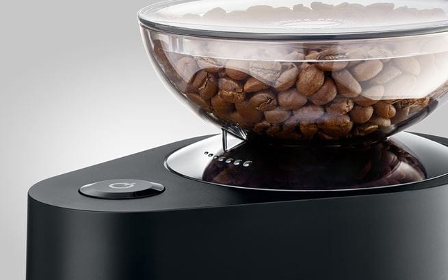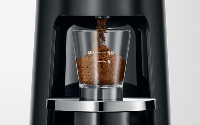 Niezwykle prosta obsługa: wystarczy nacisnąć ergonomiczny przycisk, aby młynek do kawy zaczął precyzyjnie pracować. Zwolnienie przycisku powoduje jego zatrzymanie. W praktycznej miarce można w każdej chwili zobaczyć ilość mielonej kawy.