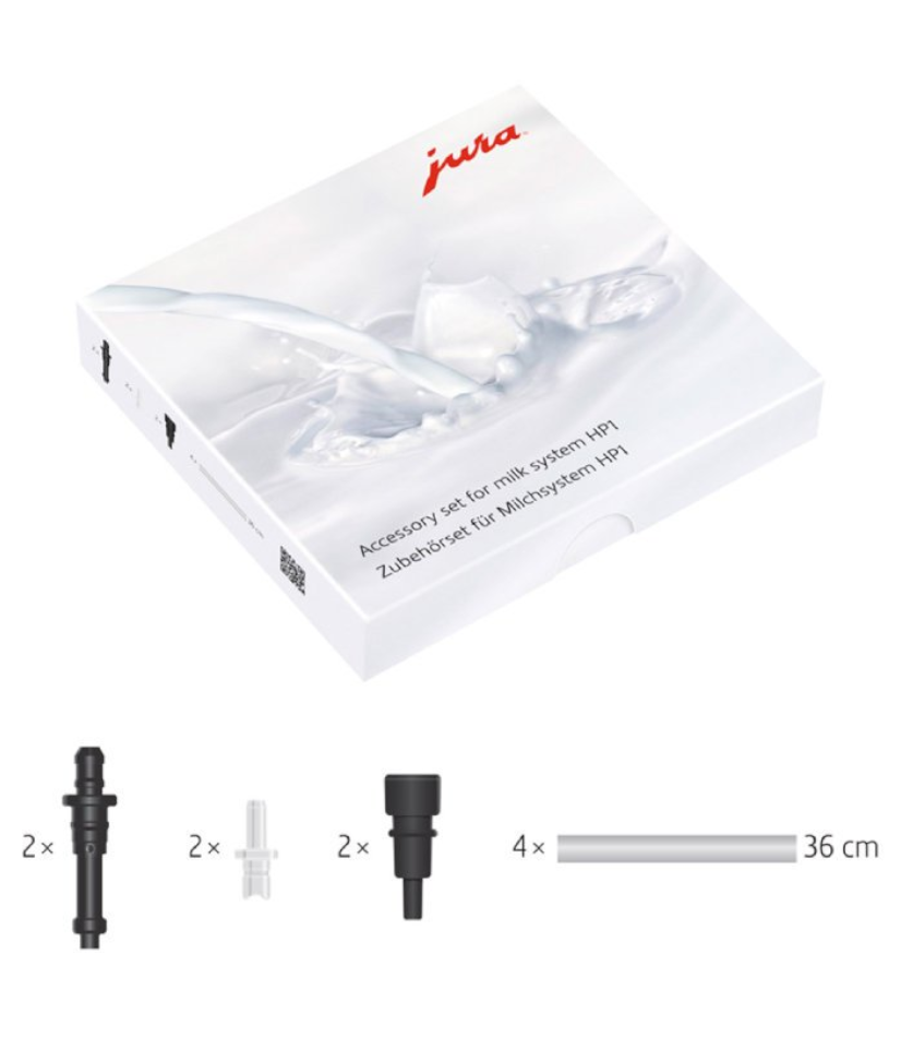 Zestaw akcesoriów używanych w systemach mlecznych dla ekspresów marki Jura. Zestaw pasuje do wszystkich ekspresów automatycznych Jura poza ekspresami serii GIGA. Zestaw akcesoriów Jura HP1 składa się z przewodów mlecznych, połączeń systemu i napowietrzaczy. Doskonale sprawdzi się na wypadek uszkodzenia bądź zgubienia jednego z elementów dołączanych oryginalnie do ekspresu.