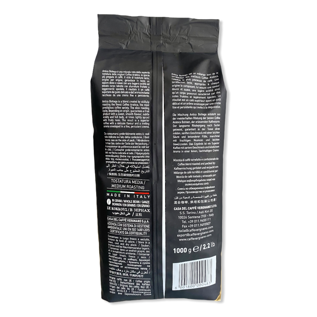 Vergnano Antica Bottega uważana jest za jedną z najlepszych kaw dostępnych na naszym rynku. Aksamitny, delikatny smak łączy się z czekoladowymi nutami uwalnianymi przez ziarna. Średni stopień palenia sprawia, że z kawy wydobywa się pełnia aromatu w całości dostępna podczas zaparzania. Dominująca ilość ziaren arabica powoduje zaś, iż kawa ma niską zawartość kofeiny, dzięki czemu można się nią raczyć wielokrotnie w ciągu dnia.